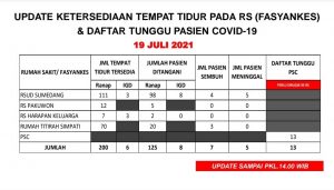 Sumedang, eljabar. Com — Perkembangan terkait situasi dan kondisi penyebaran Covid-19 di Kabupaten Sumedang pada hari ini Senin tanggal 19 Juli 2021 Pukul 16.00 WIB masih perlu
