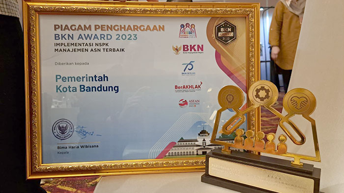 Penghargaan tersebut diterima langsung oleh Kepala BKPSDM Kota Bandung, Adi Junjunan Mustafa.