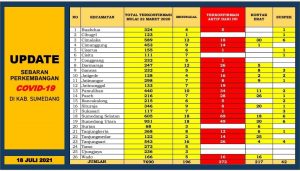 Sumedang, eljabar. Com –Perkembangan terkait situasi dan kondisi penyebaran Covid-19 di Kabupaten Sumedang pada hari ini Minggu tanggal 18 Juli 2021 Pukul 16.00 WIB masih perlu