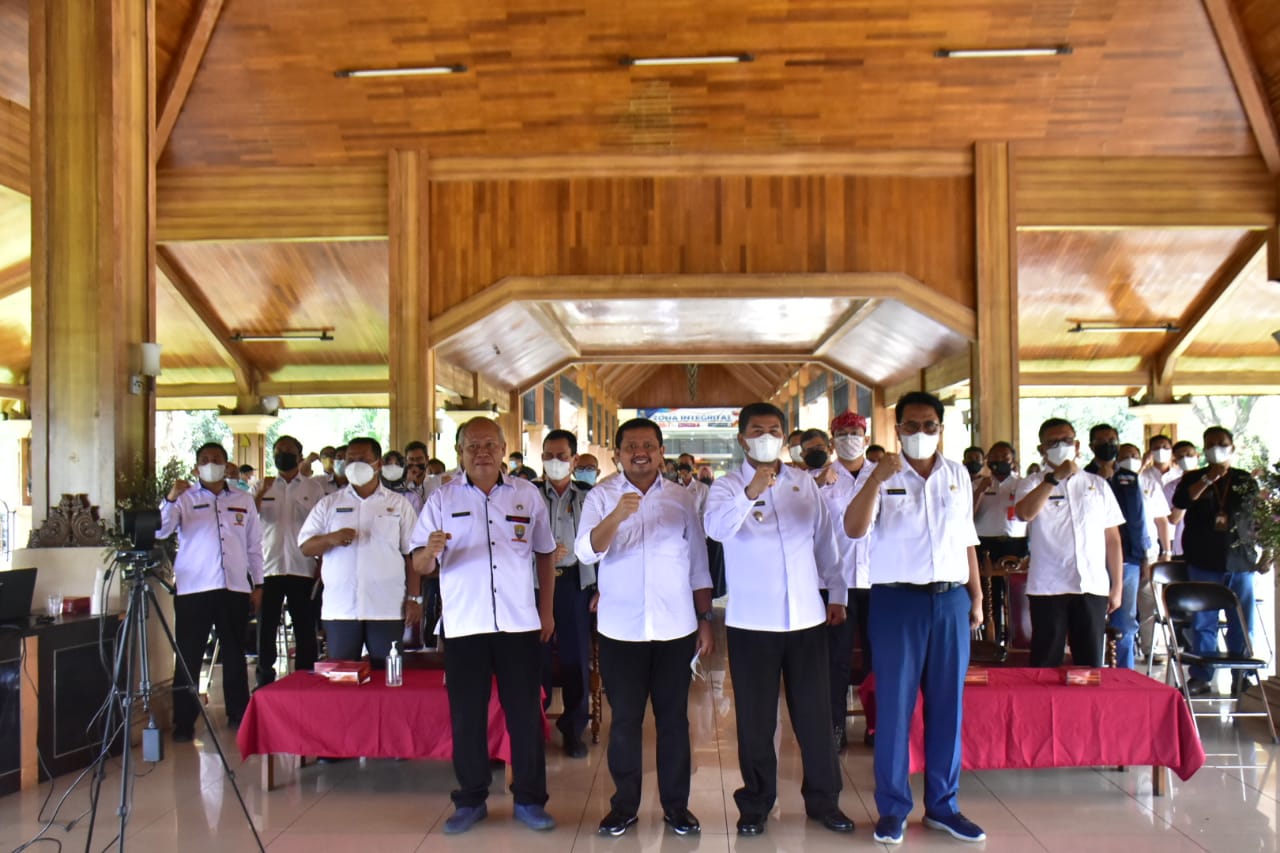 Selain Bupati dan Wakil Bupati, hadir pula narasumber pembinaan, diantaranya Kepala Pusat Dokumentasi dan Jaringan Hukum Nasional pada Badan Pembinaan Hukum Nasional (BPHN) dan Sekda Kabupaten Sumedang Herman Suryatman yang hadir melalui zoom meeting, serta Asisten Sekda Bidang Pemerintahan dan Kesejahteraan Rakyat Iwa Kuswaeri dan Kepala Bagian Hukum Setda Dodi Yohandi.(abas)