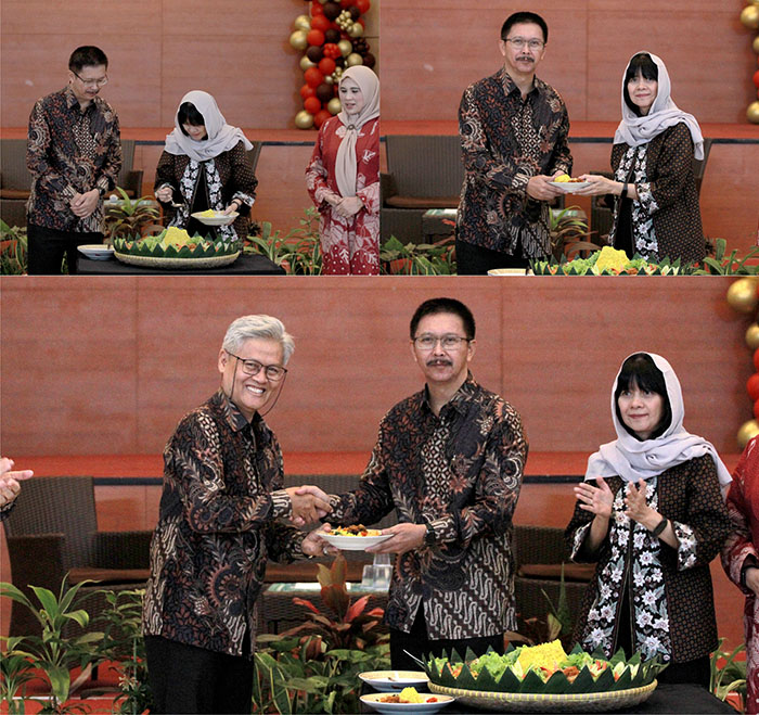Acara kemudian dilanjutkan dengan prosesi pemotongan tumpeng sebagai simbol rasa syukur. Pemotongan dilakukan oleh Rektor USB YPKP bersama Sekretaris Pengurus YPKP, Dra. Femy Nazar, didampingi para wakil rektor.