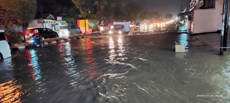 SUMEDANG, eljabar.com — Genangan air dengan ketinggian sekitar 50 centimeter kembali menghambat arus lalu lintas kendaraan di Jalan Raya Bandung-Garut KM 23 tepatnya di wilayah Desa Mangunarga Kecamatan Cimanggung, Kabupaten Sumedang, Provinsi Jawa Barat, Jum’at (24/01/2020).