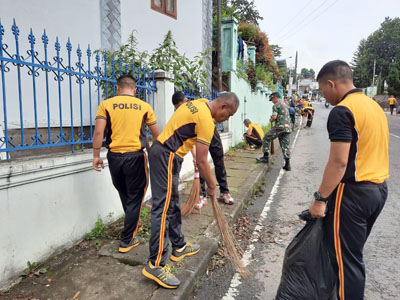 Antisipasi Covid-19, Batalyon B Pelopor Satbrimobda Jabar Laksanakan Jumat Bersih Bersama Warga