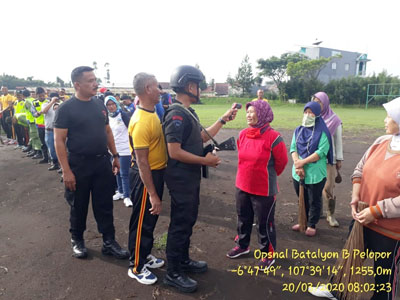 Bertempat di lapang bola Mako Cikole Batalyon B Pelopor Satbrimobda Jabar telah dilaksnakan pengambilan apel bersama dalam rangka Korve bersama/kerja Bhakti Jumat Bersih anggota Batalyon B Pelopor Satbrimobda Jabar, anggota TNI Dodik Bela Negara, aparatur Desa Cikole dan masyarakat sekitaran Mako Yon B Por Satbrimobda Jabar Dpp Danyon B Por AKBP Sarly Sollu,S.I.K.