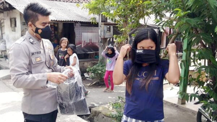Bersama Lawan Covid-19, Brimob Jabar Bagikan Masker Gratis Kepada Tukang Ojek
