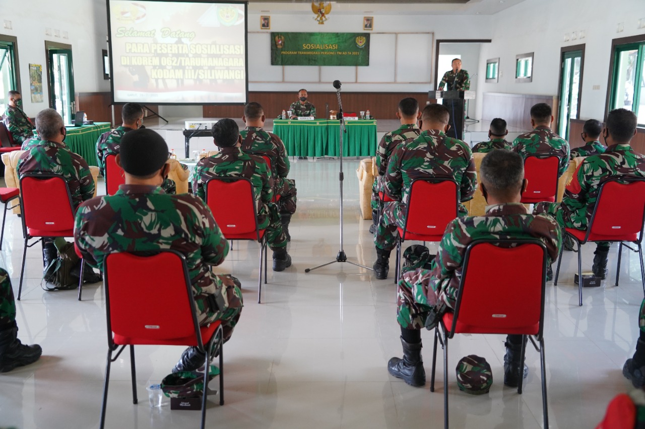Kasrem Korem 062/Tn Pimpin Acara Sosialisasi Program Transmigrasi Bagi Personel TNI AD