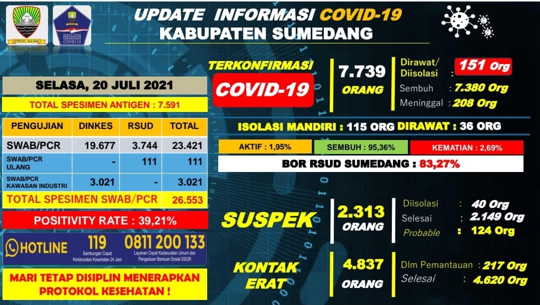Sumedang, eljabar. Com — Perkembangan terkait situasi dan kondisi penyebaran Covid-19 di Kabupaten Sumedang pada hari ini Selasa tanggal 20…