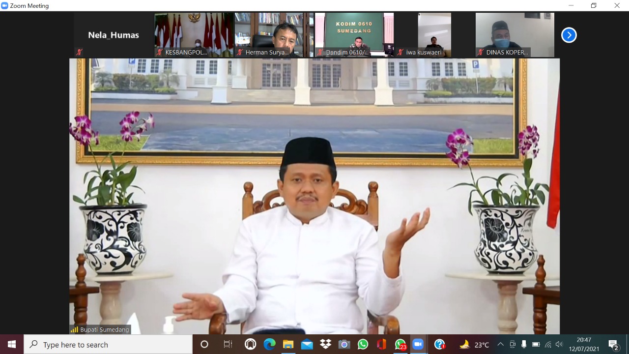 Bupati Sumedang Memimpin Rapat Evaluasi PPKM Dengan Forkopimda Melalui Zoom Meeting