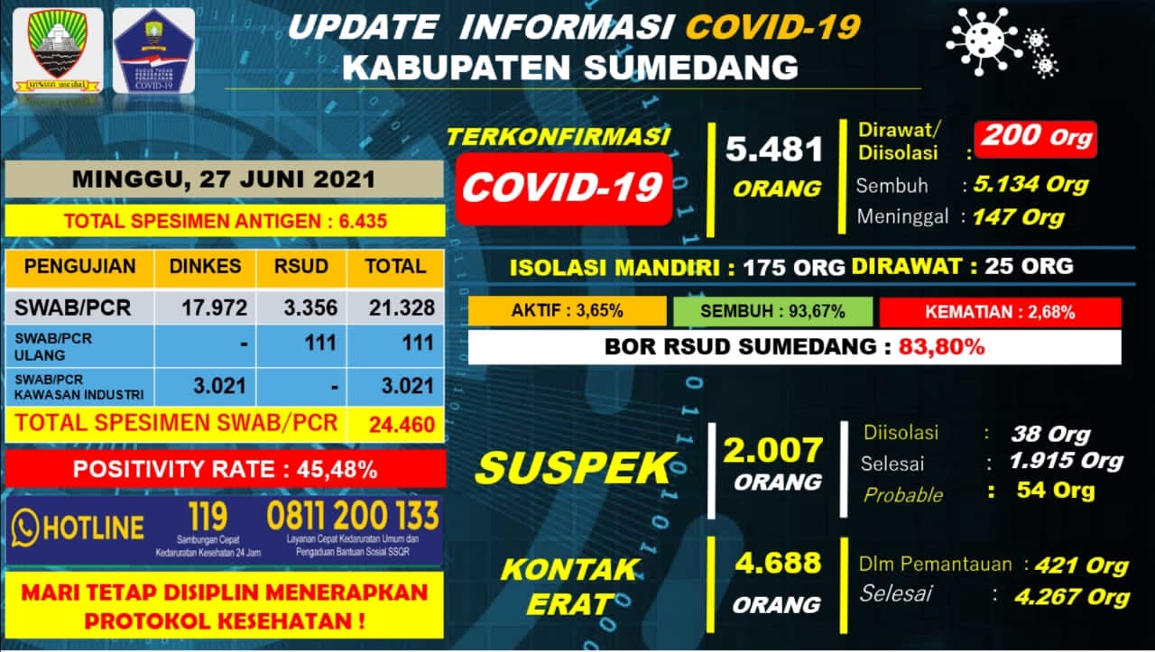 Sumedang, eljabar. Com — Perkembangan terkait situasi dan kondisi penyebaran Covid-19 di Kabupaten Sumedang pada hari ini Minggu tanggal 27…