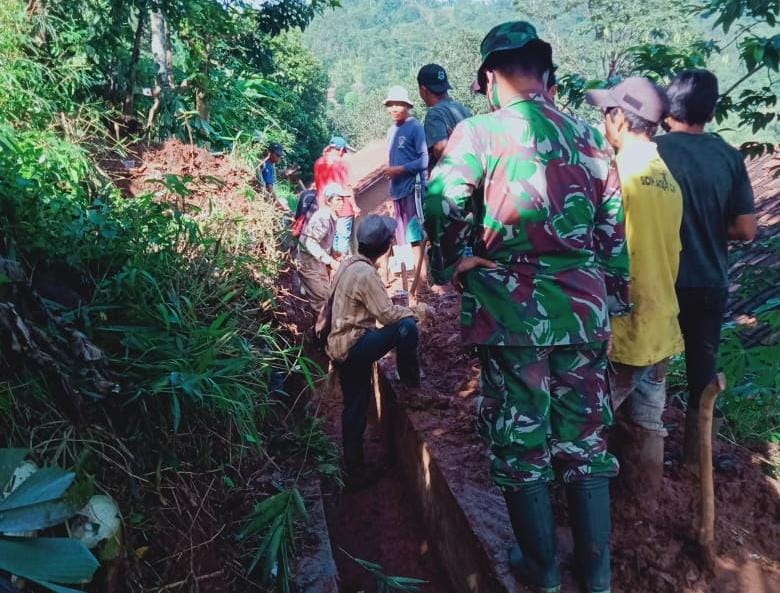Hujan yang deras sejak sore hari mengakibatkan perengan tinggi tiga meter panjang 6 meter longsor menutup akses saluran air sehingga air mampet dan longsor ke belakang rumah warga . Mendapat laporan dari kepala dusun kukulu Babinsa Sukajaya langsung koordinasi dengan Kades untuk langkah selanjutnya (kerja bakti) pembersihan material longsor.