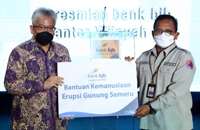2. Donasi bjb Great People Peduli yang di inisiasi dari penghimpunan dana seluruh karyawan dan insan bank bjb secara sukarela, turut berempati hadir dan peduli atas musibah yang terjadi dan;