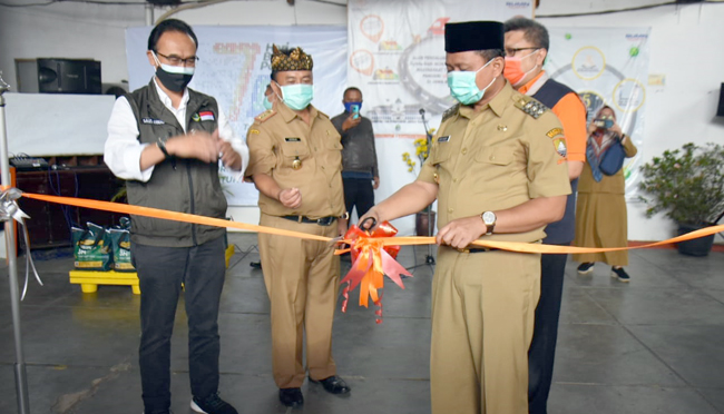 Penyaluran bantuan secara resmi ditandai dengan gunting pita oleh Bupati Sumedang H. Dony Ahmad Munir disaksikan Asisten Daerah II Provinsi Jawa Barat Daud Ahmad di Kantor Pos Sumedang, Selasa (27/10/2020).