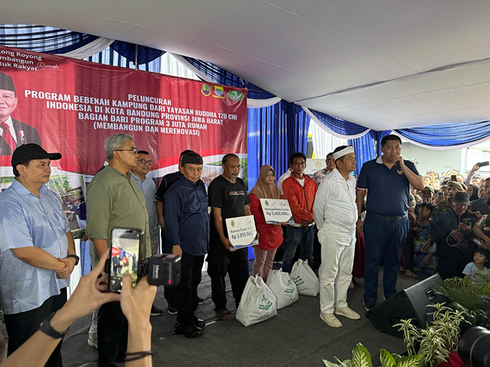 BANDUNG, eljabar.com — Badan Amil Zakat Nasional (BAZNAS) Provinsi Jawa Barat mengambil peran strategis dengan menyalurkan 100 paket sembako bagi 100 penerima manfaat Program Bebenah Kampung yang diluncurkan oleh Kementerian Perumahan dan Kawasan Permukiman RI, bekerja sama dengan Yayasan Buddha Tzu Chi Indonesia, di Plaza Pagarsih, Kota Bandung, Sabtu (03/05/2025).
