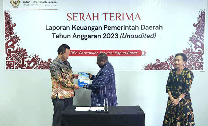 Laporan yang diserahkan kepada Badan Pemeriksa Keuangan (BPK) Perwakilan Papua Barat itu diterima oleh Plt. Kepala Perwakilan BPK Papua Barat, Suparwadi, di Ruang Tamu VIP Kantor BPK Perwakilan Papua Barat.