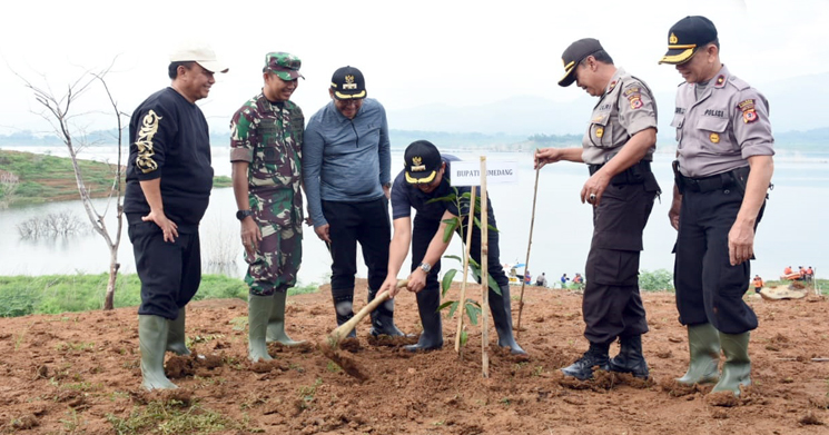 Bersama Pemkab Sumedang dan TNI, “Polri Peduli Penghijauan” Tanam Pohon di Sekitar Bendungan Jatigede