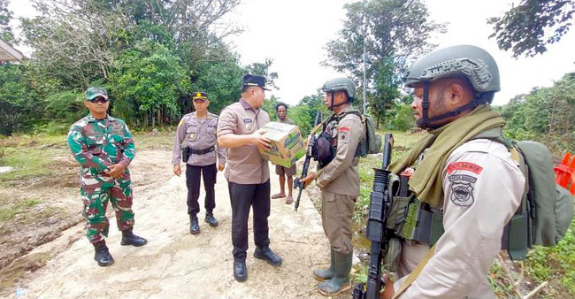 Selain meninjau kesiapan anggota, Pj Bupati Maybrat juga menyalurkan bantuan berupa bahan makanan kepada BKO Brimob Polda Papua Barat di Kampung Aisa.