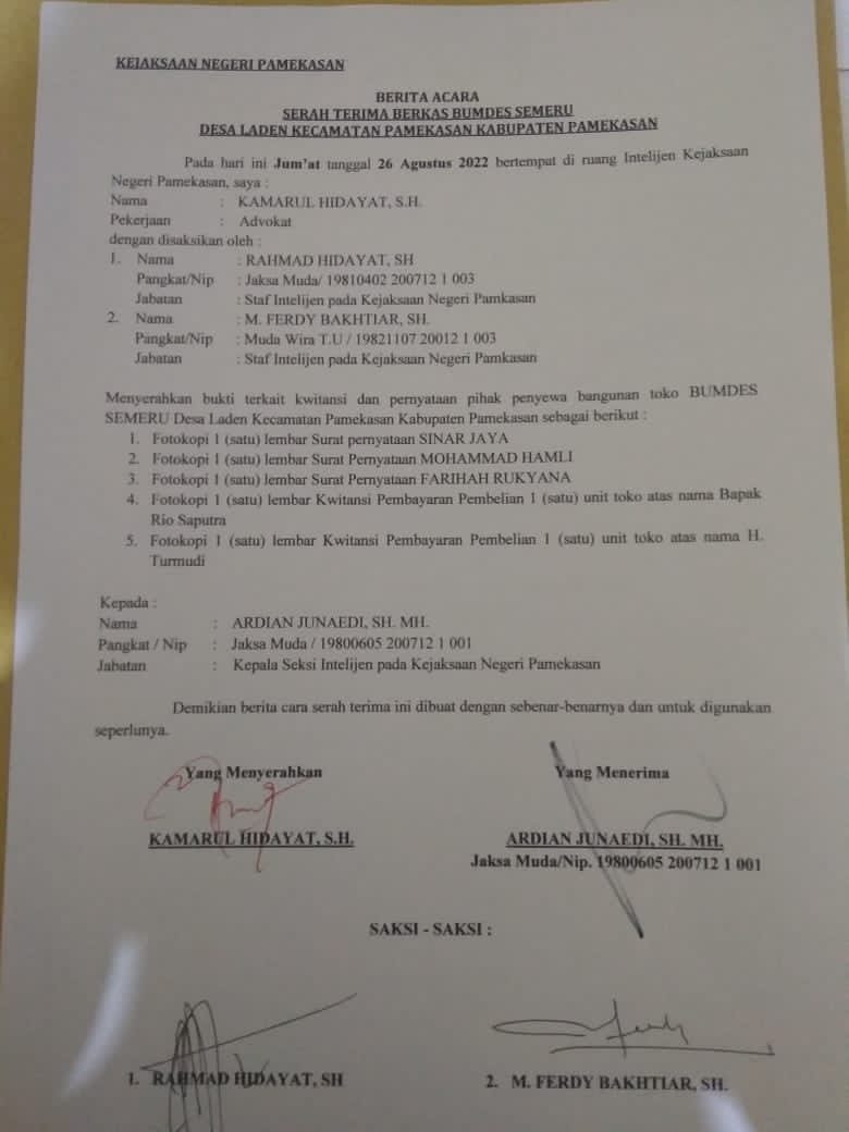 Bukti Penyimpangan BUMDes Semeru Kembali Diserahkan, Kejari Pamekasan Belum Tangani Serius
