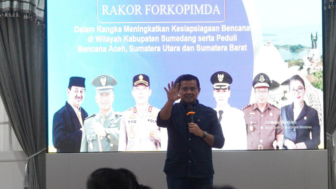 “Sehingga yang tinggal di potensi longsor, banjir mengetahui. Pastikan yang di-share sampai kepada warga masyarakat sampai kepolosok desa. Dari BMKG ke kadis, camat, ke kepala desa, sampai ke grup RW dan RT informasi cuacanya. Itulah arti penting memasifkan medsos untuk melindungi jiwa warga,” ujar Bupati Dony Ahmad Munir, saat Rakor Forkopimda Meningkatkan Kesiapsiagaan Bencana di Wilayah Sumedang di Gedung Negara, Senin (8/12/2025) malam.