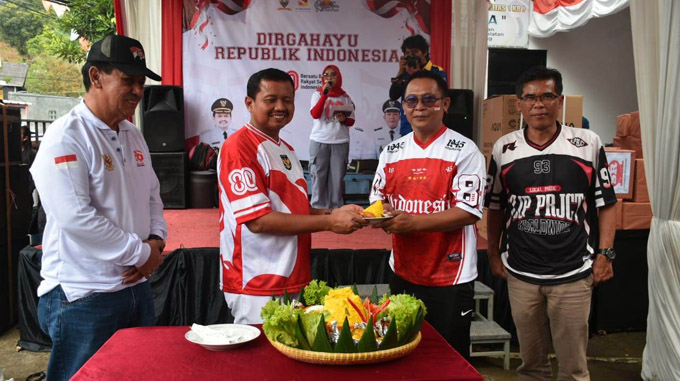 Bupati Dony juga mengingatkan pentingnya berpikir positif serta mengisi kemerdekaan dengan gotong royong.