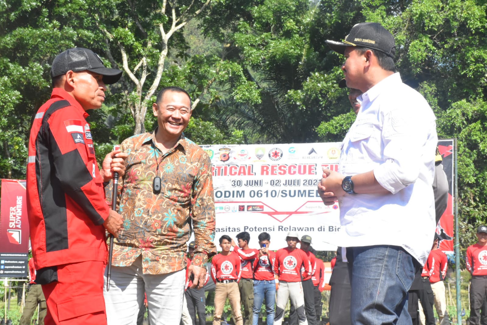 Sementara itu, Bupati Sumedang H.Dony Ahmad Munir dalam sambutannya menyampaikan, bahagia dapat membuka langsung Sekolah Vertical Rescue Tingkat Dasar yang diselenggarakan Kodim 0610 Sumedang bekerjasama dengan Unsap dan Vertical Rescue serta organisasi lainnya.