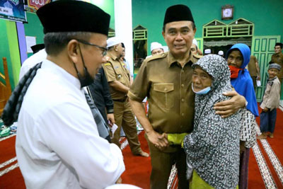 Abah Zairullah nampak didampingi Sekretaris Daerah H Ambo Sakka, Kepala SKPD dan Camat Satui melakukan buka bersama di Masjid Al Husain Desa Al Kautsar dan sholat Tarawih bersama di Masjid At Taqwa Desa Tegalsari.