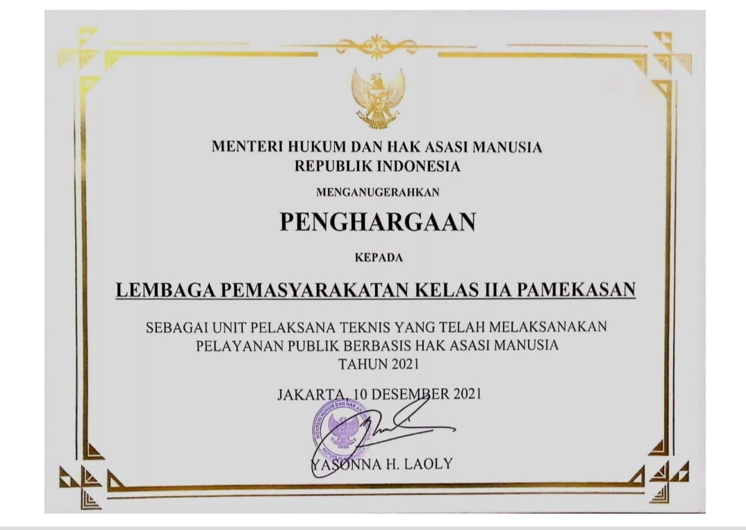 Berhasil Masuk Dalam Top 45, Lapas Kelas IIA Pamekasan Raih Penghargaan Kemenkumham