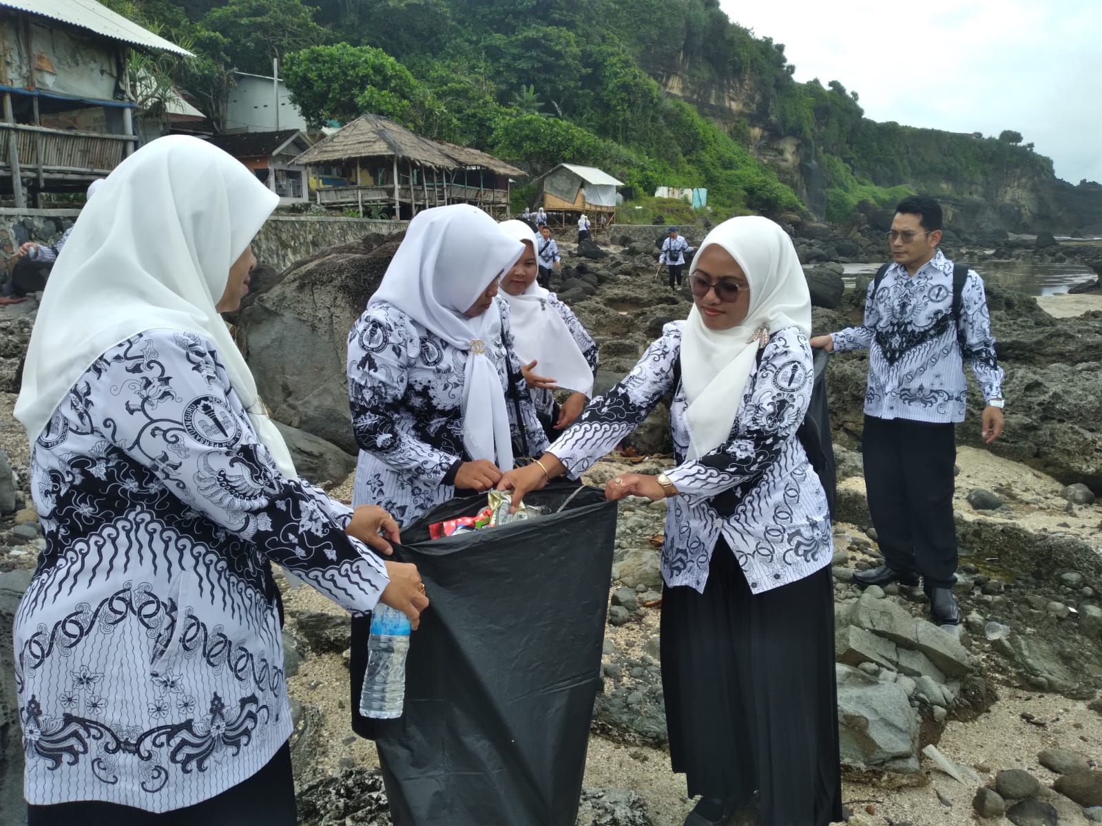 Patut Di Contoh, Guru Caringin Pungut Sampah Di Kawasan Pantai Rancabuaya