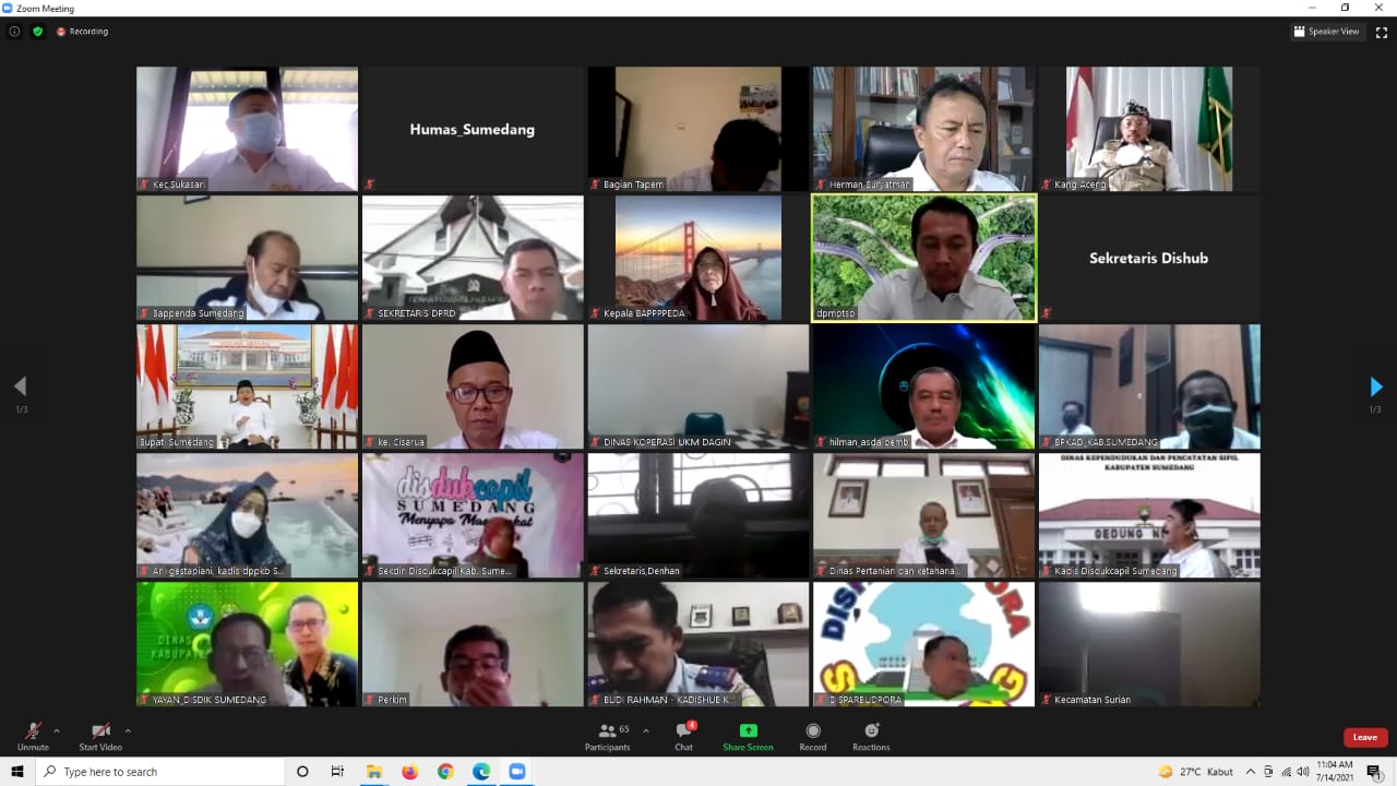 Bupati Sumedang Ikuti Rapat Koordinasi Evaluasi PPKM Darurat DKI, Banten, dan Jawa Barat Melalui Zoom Meeting