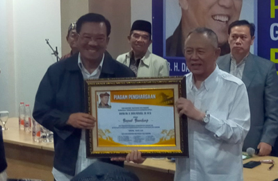 Salahsatu penggagas kegiatan tersebut Deden Rukman Rumaji menegaskan, pemberian anugerah terhadap Dada Rosada bukan karena jabatanya sebagai mantan Wali Kota Bandung.