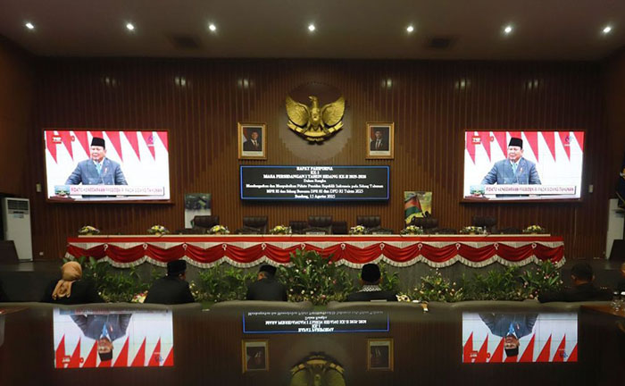 BANDUNG, eljabar.com — Dewan Perwakilan Rakyat Daerah (DPRD) Kota Bandung menggelar Rapat Paripurna dengan agenda mendengarkan pidato Kenegaraan berkenaan dengan Penyampaian Keterangan Pemerintah atas RUU tentang APBN Tahun Anggaran 2026 beserta Nota Keuangannya menjelang HUT Ke-80 Republik Indonesia, di Ruang Rapat Paripurna, pada Jumat, 15 Agustus 2025.