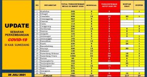 Sumedang, eljabar. Com — Perkembangan terkait situasi dan kondisi penyebaran Covid-19 di Kabupaten Sumedang pada hari ini Minggu tanggal 25 Juli 2021 Pukul 16.00 WIB masih perlu