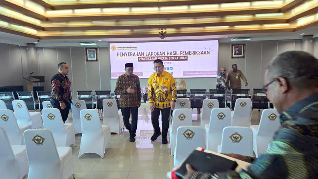 MAYBRAT, eljabar.com — Penjabat (Pj) Bupati Maybrat, Bernhard E. Rondonuwu menghadiri Penyerahan Laporan Hasil Pemeriksaan Kinerja (LPHK), Kepatuhan dan Belanja Daerah tahun Anggaran 2022 dan 2023 oleh Badan Pemeriksa Keuangan Perwakilan Prov Papua Barat di Manokwari, Senin (29/1).