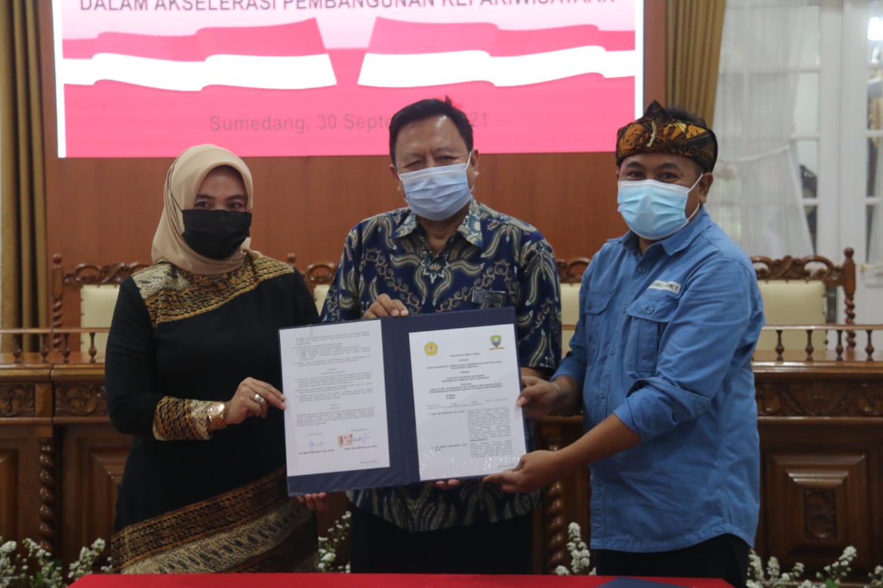 Menurut Hari, kerjasama tersebut dilakukan berdasarkan Peraturan Bupati (Perbup) nomor 111 tahun 2021 tentang Kolaborasi Pemangku Kepentingan dalam Akselerasi Pembangunan Kepariwisataan di Sumedang.
