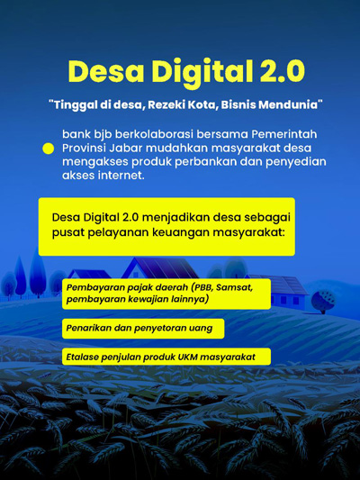 Program Desa Digital 2.0 menjadi perhatian bank bjb karena desa adalah sebuah aglomerasi permukiman dengan berbagai mata pencaharian warga dan latar belakang yang memiliki potensi ekonomi besar yang perlu dikembangkan.