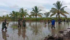 MERAUKE, eljabar.com — Dukung program ketahanan pangan, Satgas Yonif 315/Garuda mendampingi dan membantu masyarakat pada musim tanam padi, mengolah sawah hingga penanaman padi sawah di Kp. Kiworo Distrik Kimaam Kab.Merauke Pada Senin (21/03/2022).