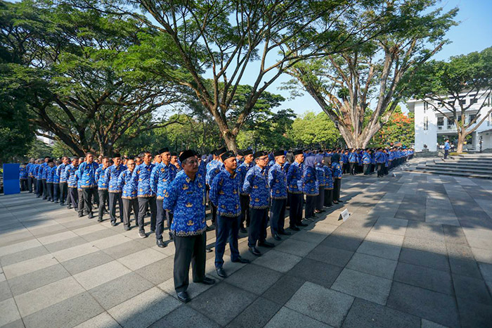 “Ini adalah momen yang luar biasa, kita apel dengan menggunakan seragam korpri. Untuk itu kita harus merefleksikan sebagai aparatur yang profesional salah satunya mengamalkan Panca Prasetya Korpri,” kata Ema Sumarna saat memimpin apel mulai bekerja di Plaza Balai Kota Bandung, Selasa 17 Oktober 2023.
