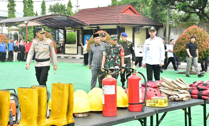 Dalam kegiatan tersebut juga dilakukan pengecekan kesiapan personel, peralatan serta sarana pendukung sperti kendaraan oprasional, perahu karet, alat komunikasi, tenda darudrat, logistik bencana dan lainnya.