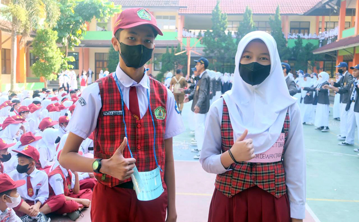 Hal serupa disampaikan Putra Darwis Pratama. Siswa kelas 7F ini juga mengaku sangat antusias menyambut hari pertamanya masuk sekolah.