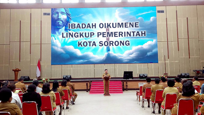 Ibadah Oikumene, Pj. Wali Kota Sorong Ajak ASN Melayani Dengan Hati