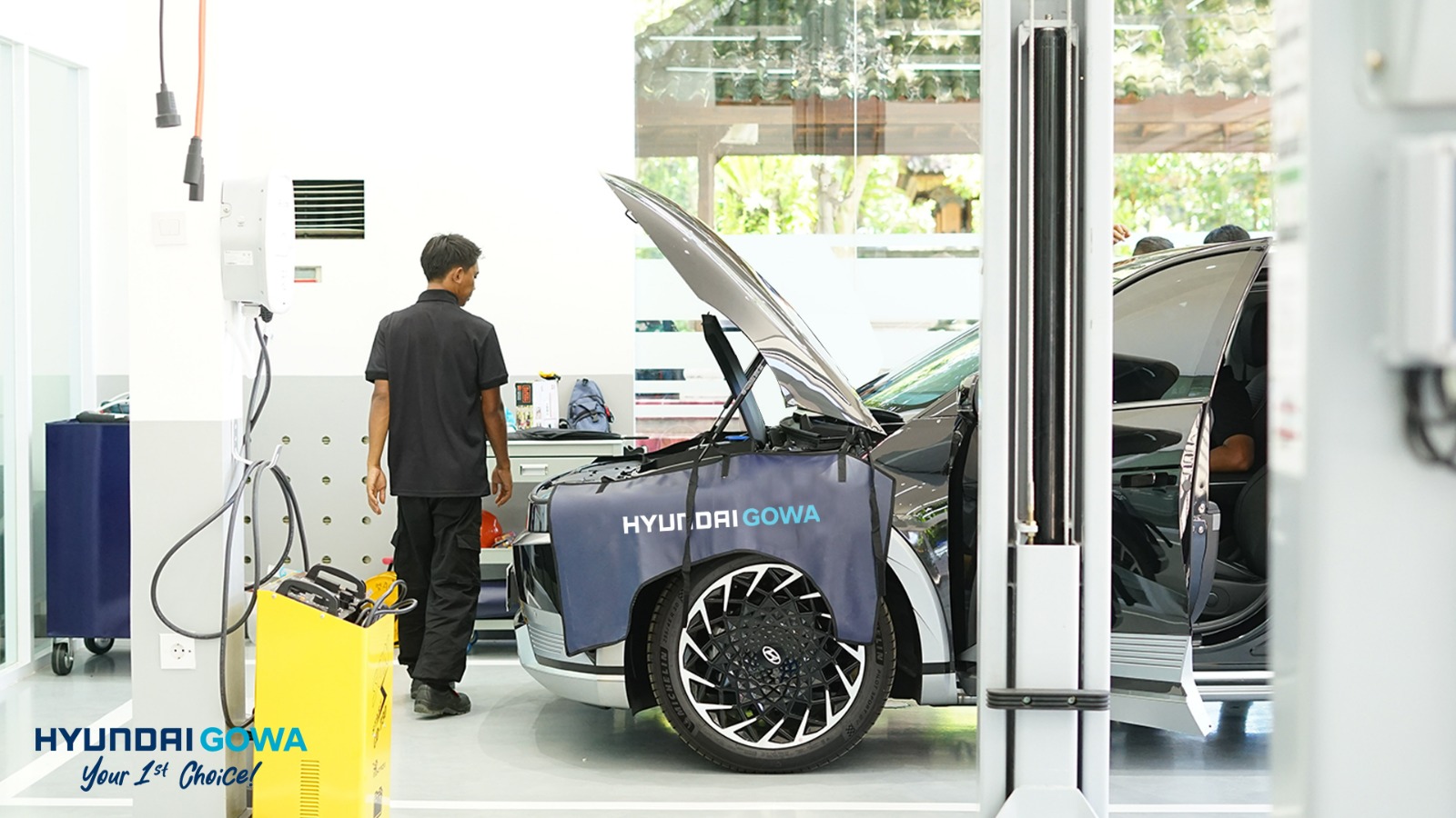 Ferry, Chief Operation Officer PT Gowa Modern Motor, menjelaskan, “Sebagai salah satu pionir mobil listrik di Indonesia, Hyundai tidak hanya menghadirkan varian mobil listrik sesuai kebutuhan, tetapi juga solusi untuk kemudahan dalam mobilisasi. Bagi pengguna mobil listrik Hyundai, silahkan melakukan servis dan pengecekan kondisi baterai di bengkel resmi Hyundai Gowa sambil melakukan pengisian daya baterai.”