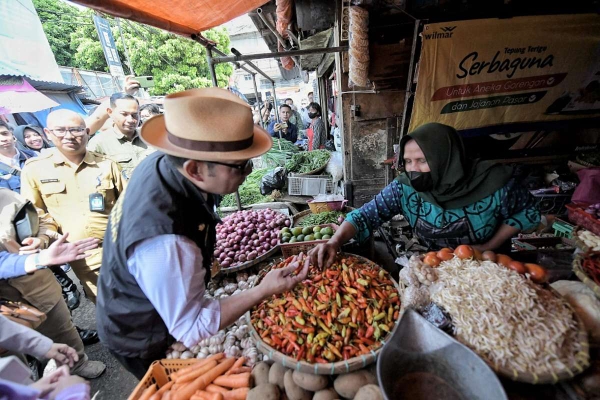 Kang Emil, sapaan akrabnya menyebut, beberapa komoditas yang harganya naik di pasar tersebut, yaitu beras, cabai, daging sapi, sayuran, bawang, dan ikan.