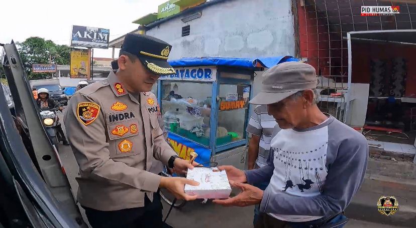 Dengan menggunakan mobil patroli Kapolres didampingi Wakapolres Sumedang Kompol Endar Supriyatna, S.Kom., S.I.K., berkeliling membagikan nasi kotak ke para pedagang, pengemudi ojeg, pengemudi becak, pengamen dan pejalan kaki.