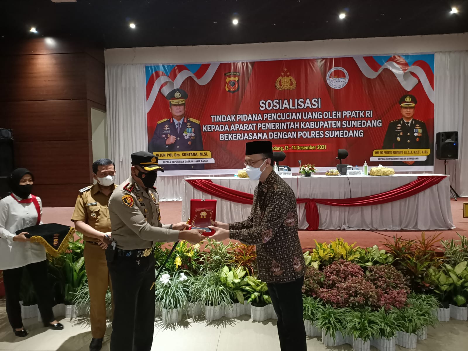 Sumedang,eljabar.com – Senin (13 /12/21) pukul 08.30 Wib bertempat di Ballroom Graha Asia Plaza Sumedang Jl. Mayor Abdurahman No.225, Kel Kota kaler Kec. Sumedang Utara Kab. Sumedang telah dilaksanakan Kegiatan Sosialisasi Tindak Pidana Pencucian Uang Oleh PPATK (Pusat Pelaporan dan Analisis Transaksi Keuangan) RI Kepada Aparat Pemerintahan Kab. Sumedang Bekerja Sama Dengan Polres Sumedang.