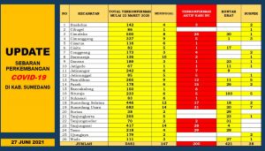Sumedang, eljabar. Com — Perkembangan terkait situasi dan kondisi penyebaran Covid-19 di Kabupaten Sumedang pada hari ini Minggu tanggal 27 Juni 2021 Pukul 16.00 WIB masih perlu
