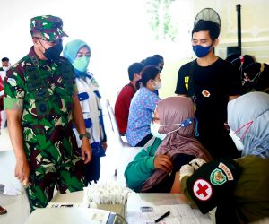 Mayjen TNI Agus Subiyanto dalam kesempatan tersebut selain melaksanakan peninjauan vaksinasi juga memberikan bantuan 100 paket sembako kepada masyarakat yang membutuhkan dan diberikan secara simbolis kepada 10 orang perwakilan. (Pendam III/Siliwangi). ***