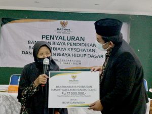 “Bantuan yang diberikan nantinya akan kami gunakan renovasi rumah dari ibu Widaningsih yang sudah 100% roboh. Pembangunan tersebut sudah disurvei langsung oleh Baznas,” ucap Iwan.