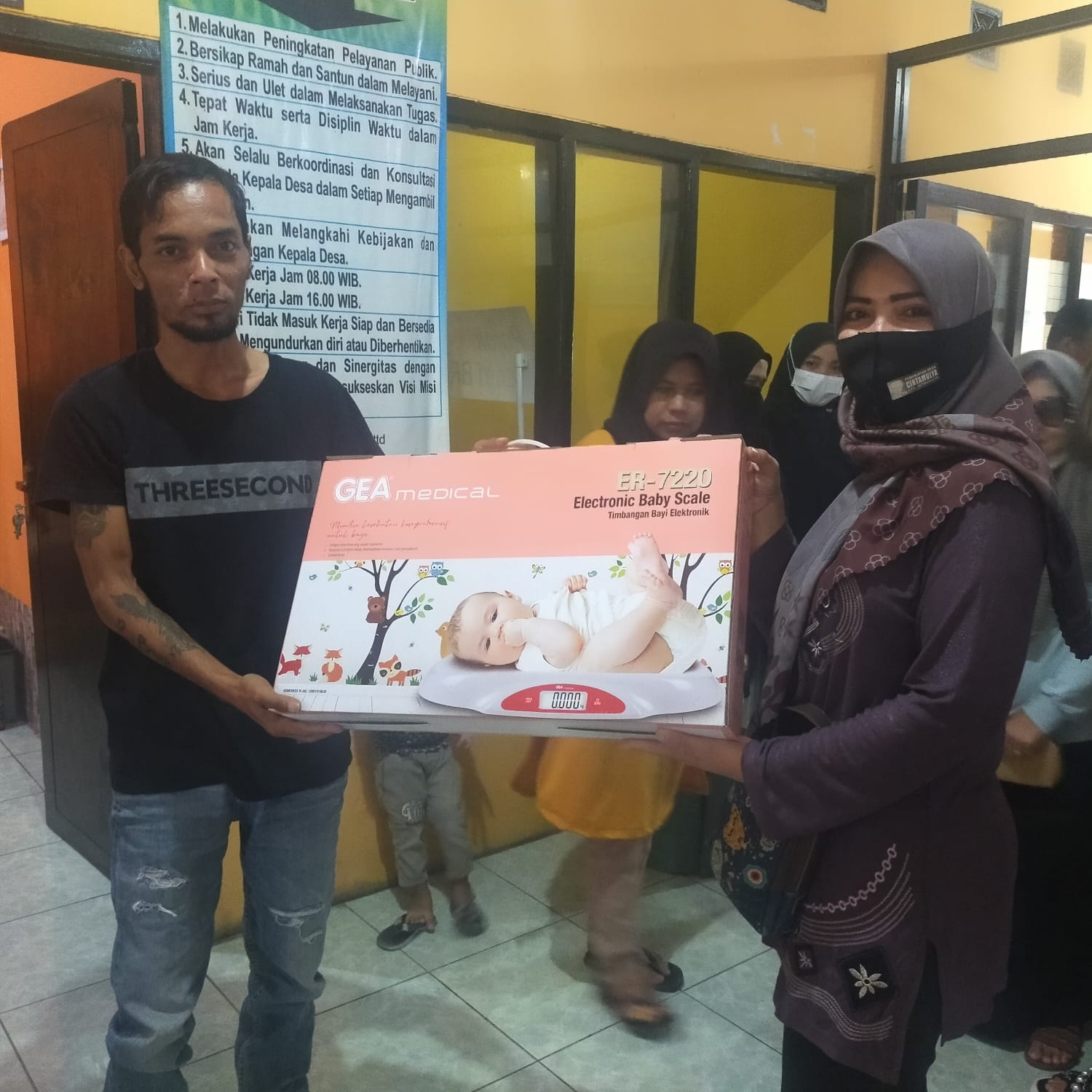 Kepala Desa Cintamulya, Sarip Wahyudi Memberikan Bantuan Alat Antropomerti Kit Set dan Timbangan Bayi Digital ini kepada Posyandu