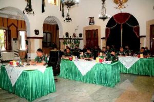 Pangdam III/Slw Mayjen TNI Agus Subiyanto, saat menerima pengarahan didampingi para pejabat utama Kodam III/Slw. Pada Vicon kali ini diikuti Asisten Kasad, Kaskostrad, seluruh Pangkotama jajaran TNI AD di seluruh wilayah Indonesia, Danjen Kopassus, dan para pejabat TNI AD lainnya.