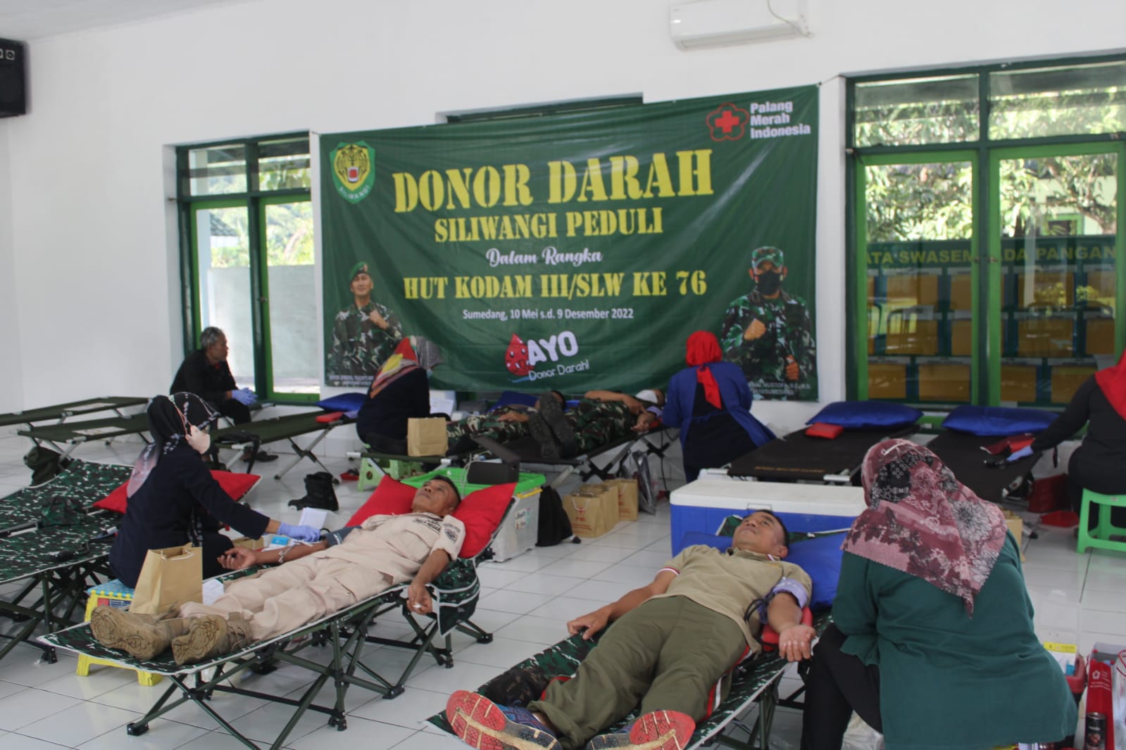 Dandim 0610/Sumedang Letkol Inf Zaenal Mustofa S.E.,M.Si. mengatakan, kegiatan bhakti sosial donor darah tersebut dalam rangka menyambut HUT Kodam lll/Siliwangi ke 76 Tahun 2022. Donor darah ini juga sebagai bentuk kepedulian kemanusiaan Kodam lll/Siliwangi dalam membantu PMI dalam memenuhi persediaan darah khusus nya di wilayah Kabupaten Sumedang.