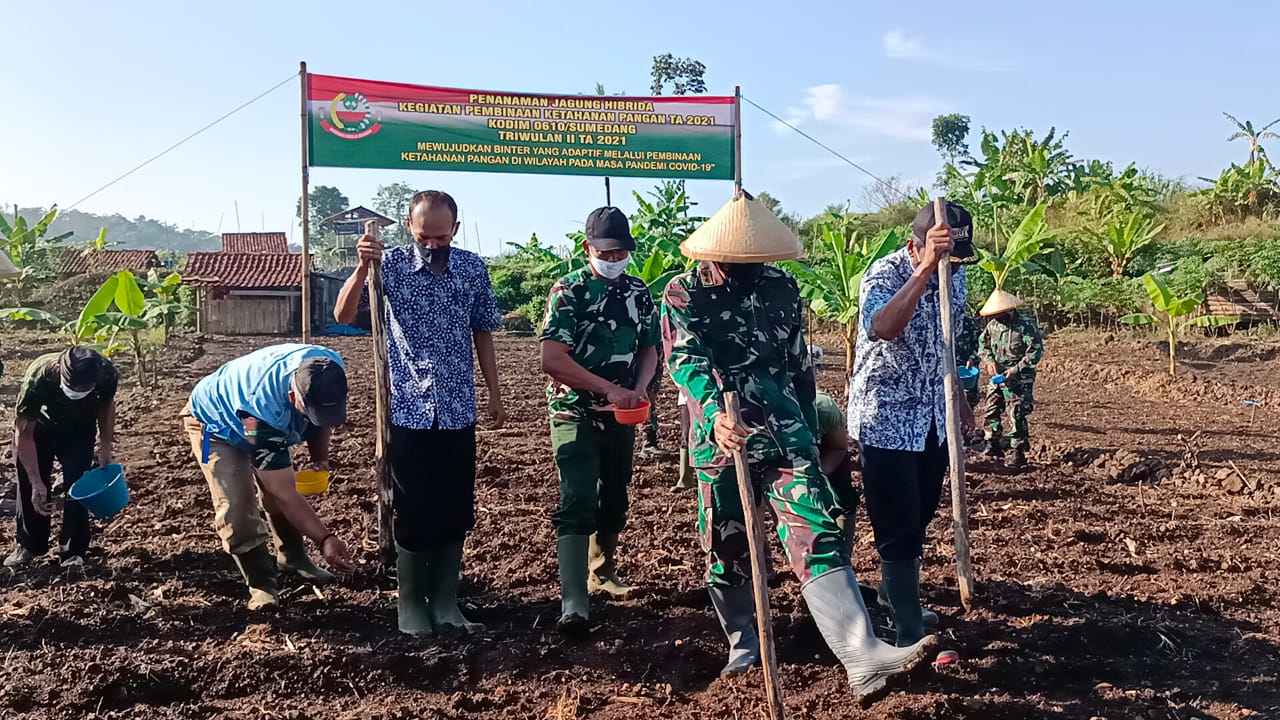 Kegiatan penanaman jagung tersebut dihadiri oleh, Dandim 0610/Sumedang
